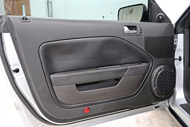 Silver Metallic Exterior with Blue Stripes Over Black Leather Interior